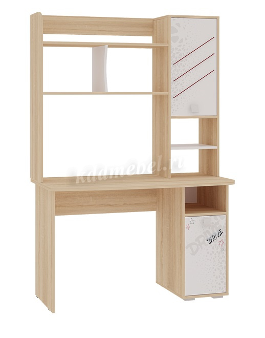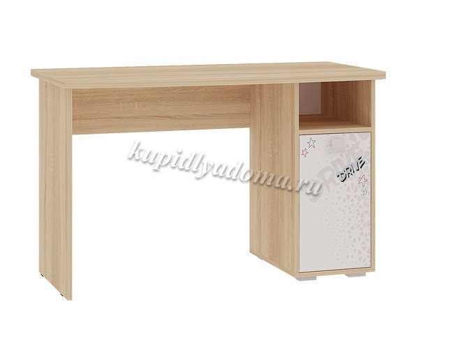 Стильный стол «Энерджи» – мечта каждого подростка. Компактный стол прекрасно впишется даже в маленькое пространство детской комнаты. Удобная столешница подойдет как для письма, так и для занятий на компьютере или ноутбуке. Открытая полка и закрытые ниши стола хорошо подходят для хранения учебников  и школьных принадлежностей. Эффектный принтерный рисунок на фасадах выдержан в общем стилистическом решении. Рисунок устойчив к истиранию и ультрафиолету. Детская «Энерджи»- все, что нужно для подростка!