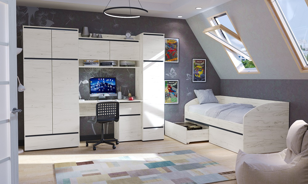 Модульная детская Гретта (Дуб крафт белый/Антрацит)