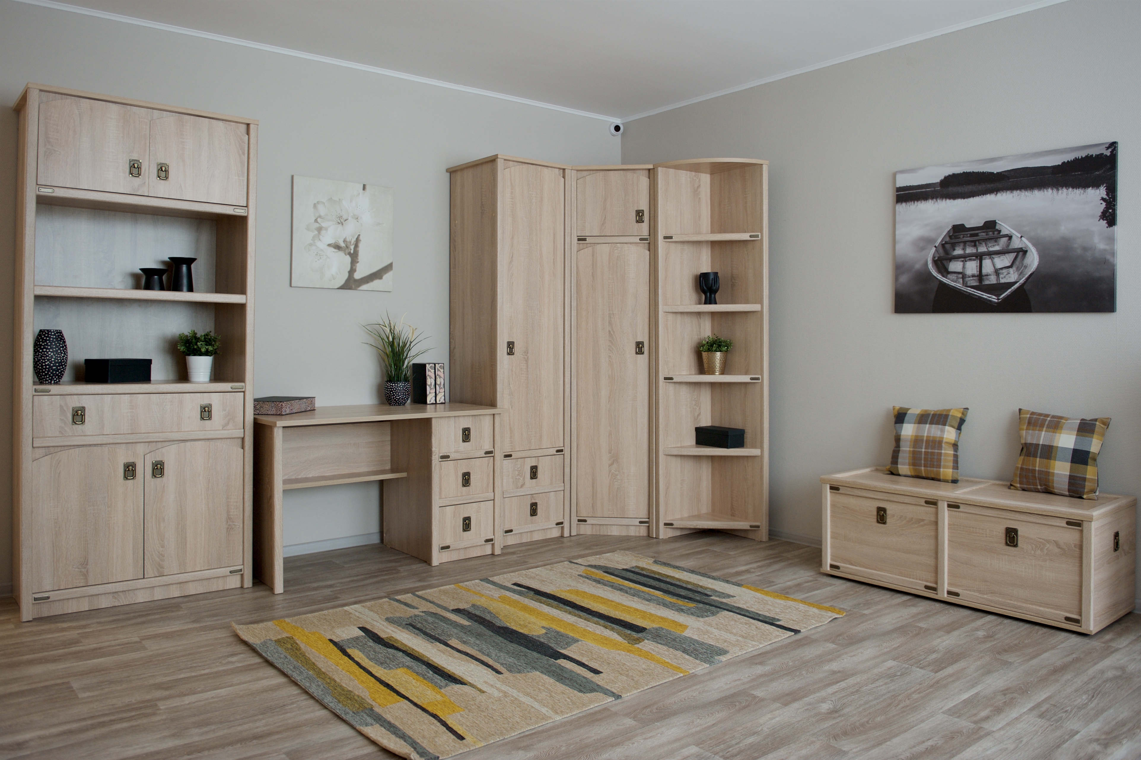 Детская Валенсия - отличное решение для детей любой возрастной категории. Все модули этой системы максимально функциональны и вместительны. Разнообразие модулей позволит Вам подобрать оптимальный комплект. Декоративные элементы создают яркий морской стиль этого комплекта. В этой модели предлагается более компактное решение двуспальной кровати, чем многоярусная кровать, съедающая слишком много пространства. При этом есть возможность превратить кровать в диван. Жемчужина модели – сундук. При относительно демократичной цене в комплекте использованы высококачественные материалы