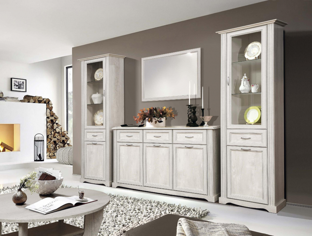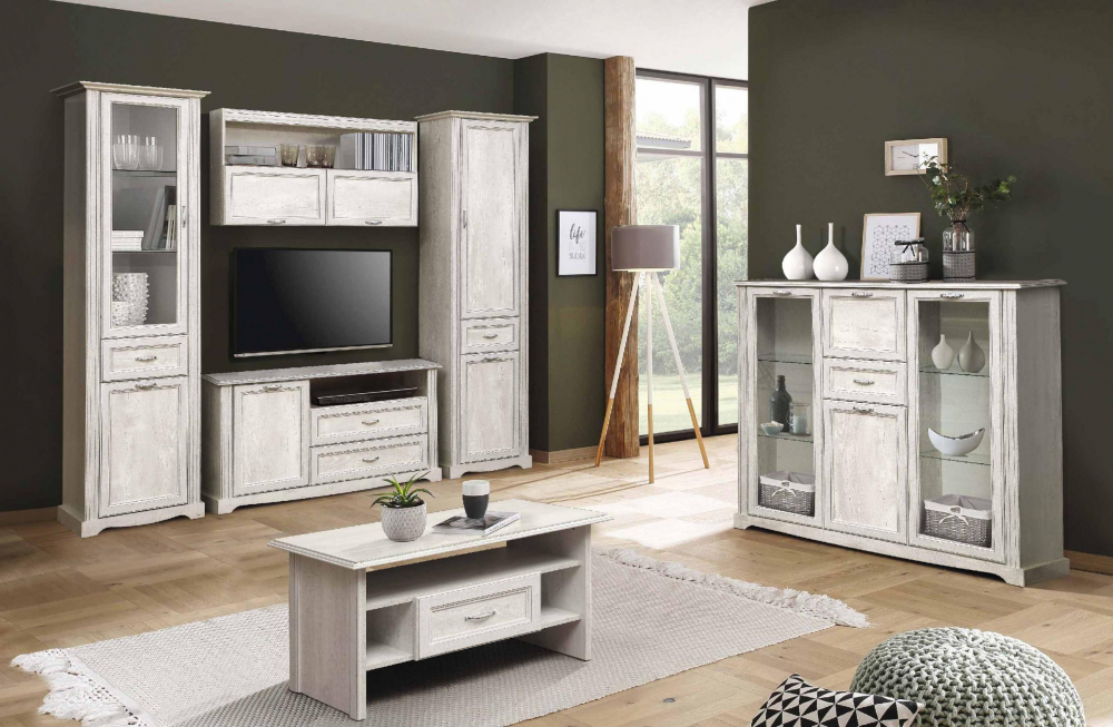 Гостиная Сохо - модульный набор для современной гостиной. В составе гарнитура множество элементов, из которых Вы сможете собрать идеальный комплект. Мебель отличается качественным исполнением и красивым внешним видом. Один из возможных вариантов представлен на фото. Комбинированный пенал с ящиком, широкая тумба и шкаф-витрина для хранения разнообразных предметов. Стильный журнальный столик завершает композицию.