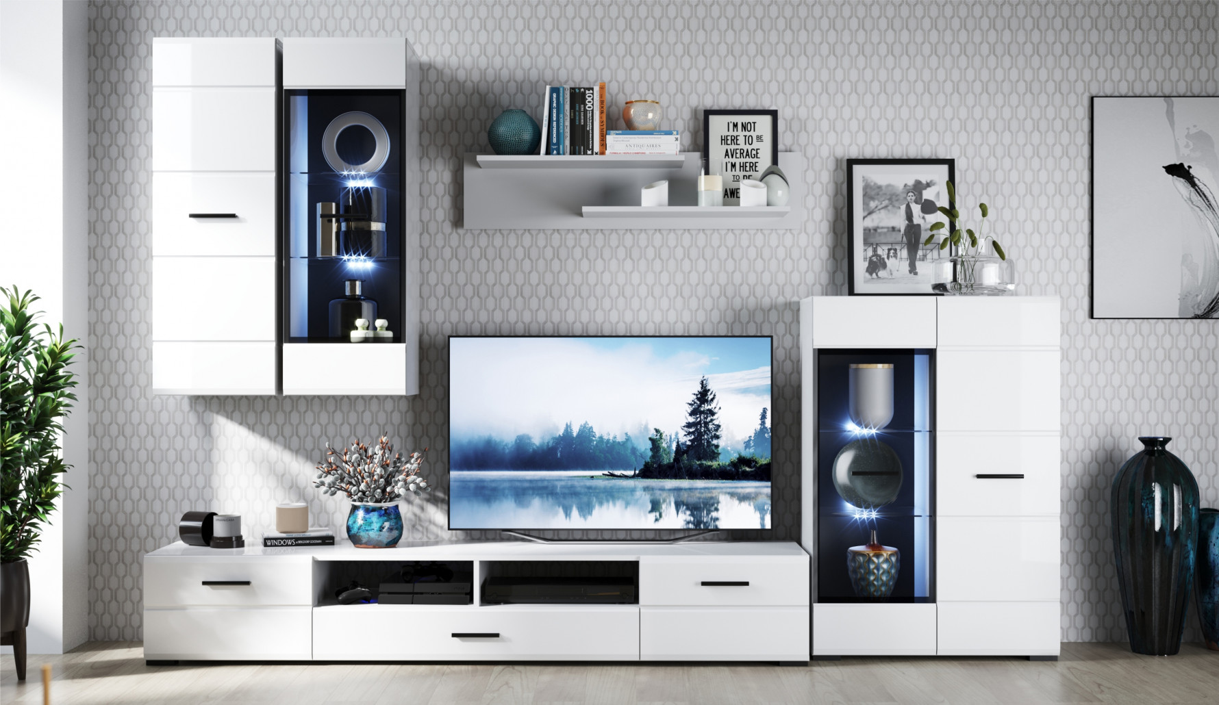 Тумба ТВ Йорк 2 д (Белый жемчуг/Белый глянец)