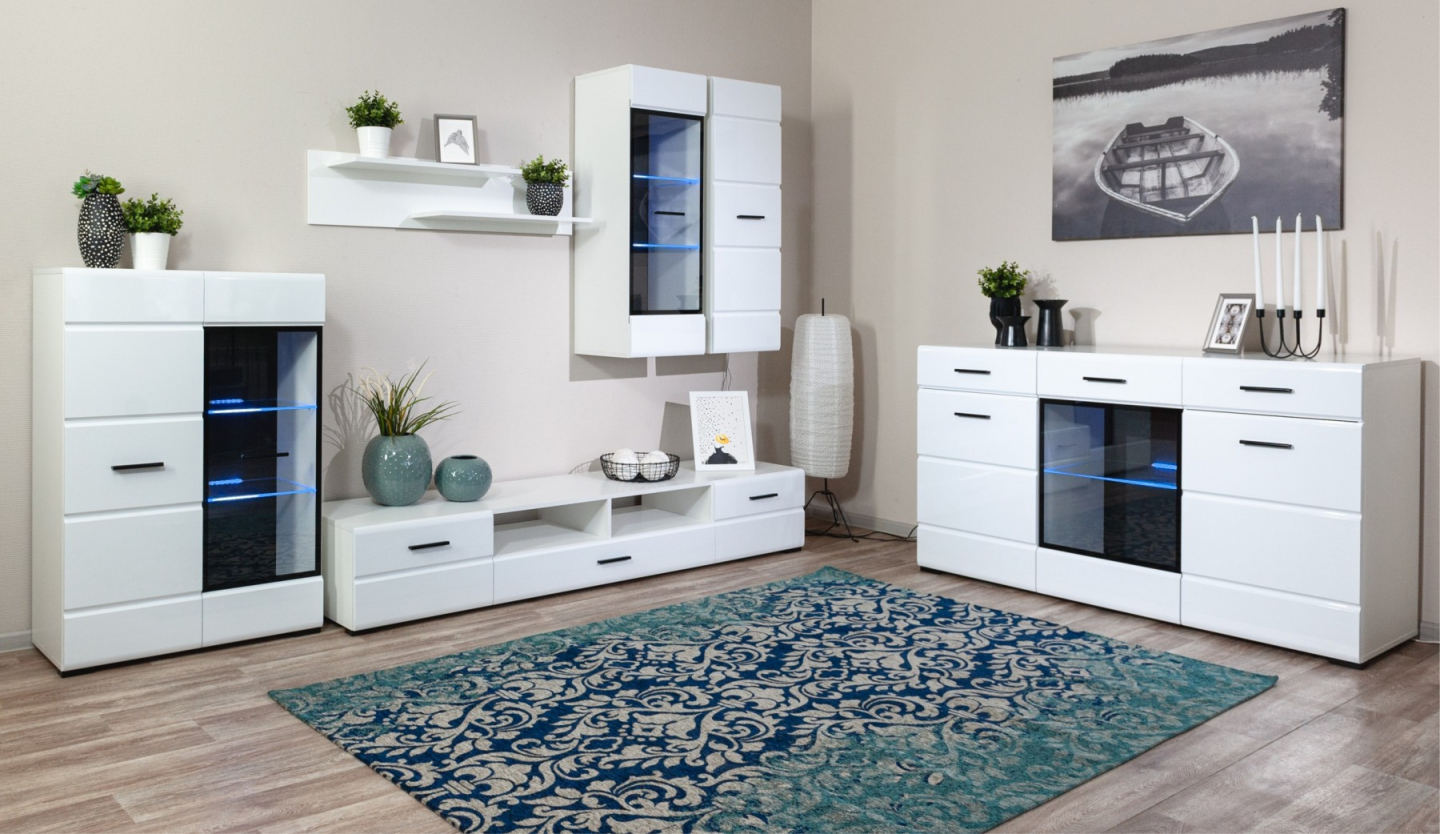 Комод-витрина Йорк 2д с ящиками (Белый жемчуг/Белый глянец) наличие товара: