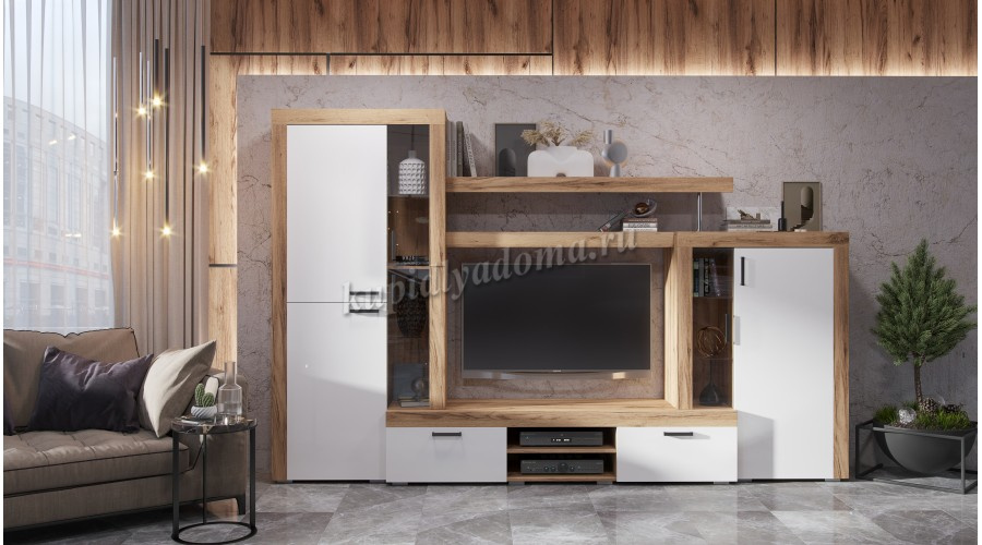 • Гостиная Моди К-2 (Дуб крафт золотой/Белое дерево)