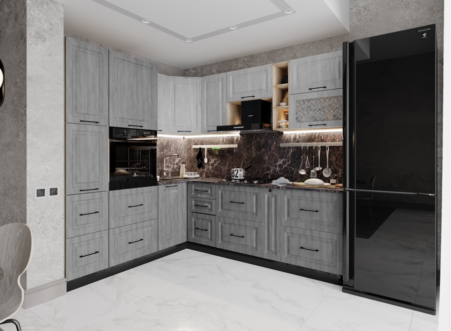 Шкаф нижний глубокий Г4Р кухня Либерти без столешницы (Дуб сонома/Холст натуральный) наличие товара: