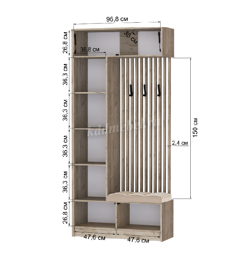 Ручки отсутствуют, крючки пластик, черные, покрытие soft-touch