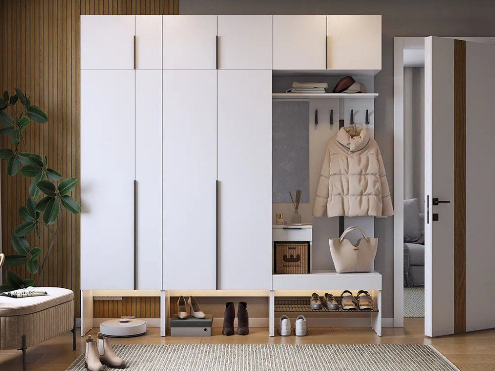 Прихожая "Баско" сочетает в себе современный дизайн и практичность, становясь незаменимым элементом вашего интерьера, который поможет поддерживать порядок и уют в доме.