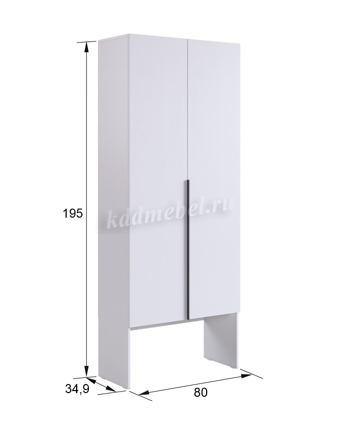 Изготовленный из высококачественного ЛДСП толщиной 16 мм, шкаф гарантирует прочность и долговечность. Длинные пластиковые ручки добавляют современный акцент и удобство в использовании.