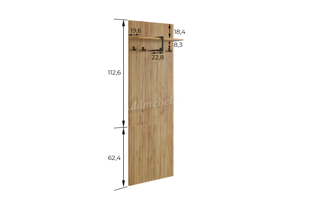 Вешалка 1 "Бодрум" – стильное и функциональное решение для организации пространства в вашем доме. Эта вешалка сочетает в себе элегантный дизайн и практичность, идеально подходя для прихожей, спальни или гостиной. Принт, имитирующий вертикальную фрезеровку придает вешалке уникальный и современный вид, добавляя текстуру и глубину. Крючки предоставляют удобное место для хранения верхней одежды, сумок или аксессуаров. Держатель для плечиков позволяет организовать хранение одежды, сохраняя ее в идеальном состоянии. Полка служит дополнительным пространством для хранения головных уборов.