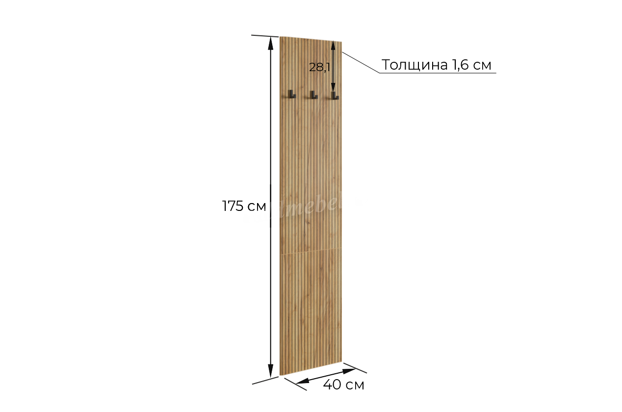 Вешалка 3 "Бодрум" – стильное и функциональное решение для организации пространства в вашем доме. Эта вешалка сочетает в себе элегантный дизайн и практичность, идеально подходя для прихожей, спальни или гостиной. Принт, имитирующий вертикальную фрезеровку придает вешалке уникальный и современный вид, добавляя текстуру и глубину. Крючки предоставляют удобное место для хранения верхней одежды, сумок или аксессуаров. Держатель для плечиков позволяет организовать хранение одежды, сохраняя ее в идеальном состоянии. Полка служит дополнительным пространством для хранения головных уборов.
