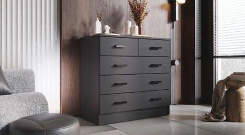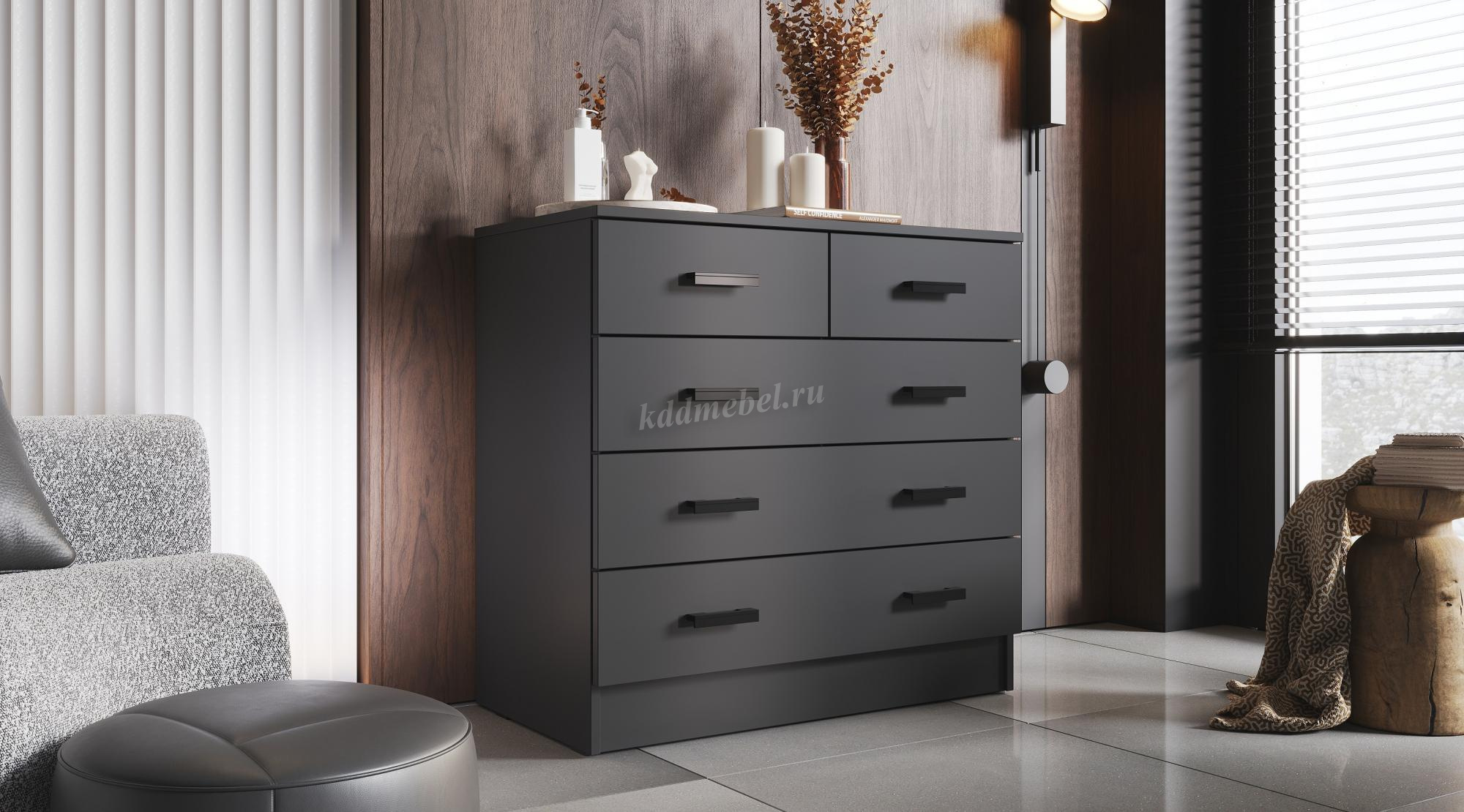 Комод оснащён пятью выдвижными ящиками (3 больших и 2 маленьких).