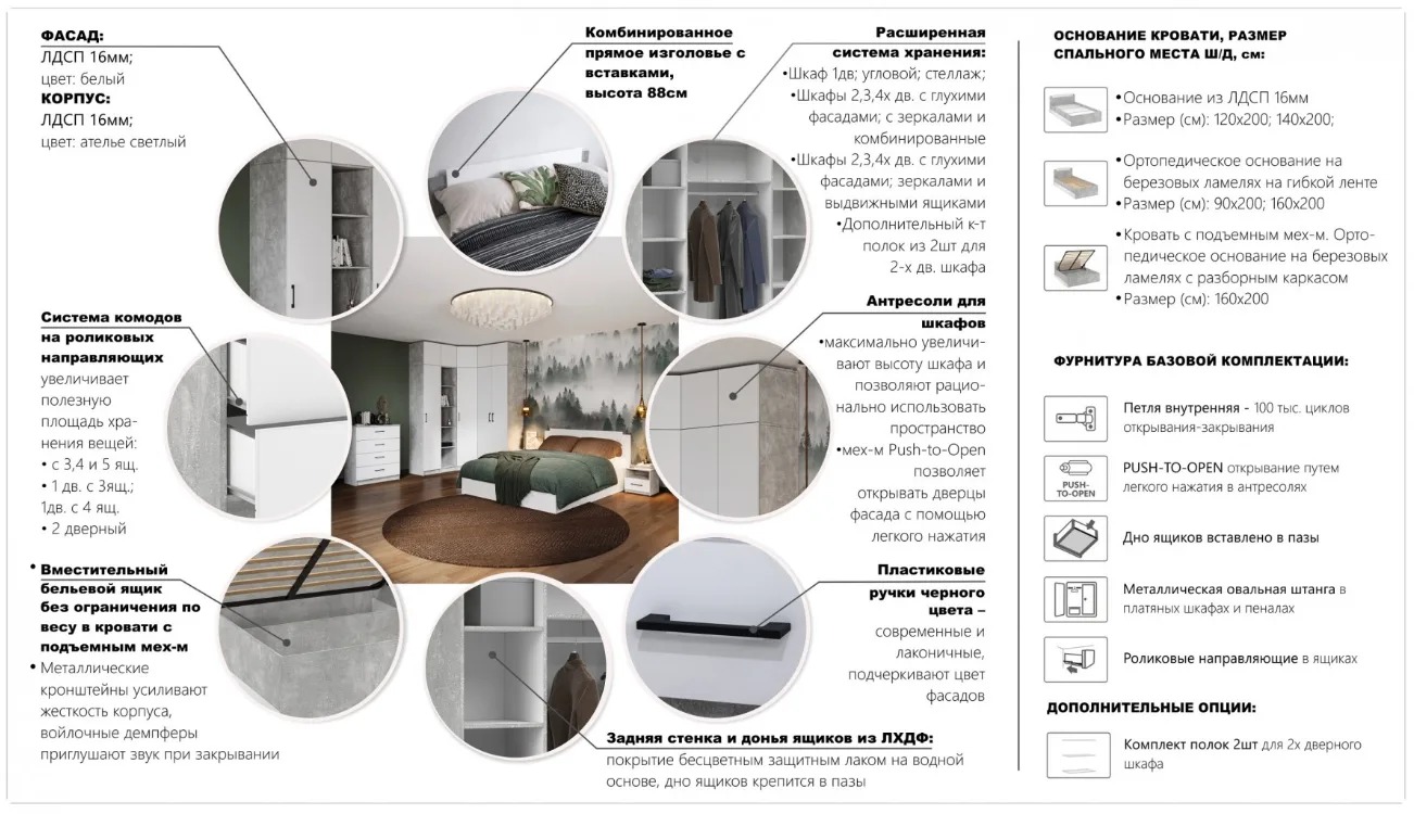 Модульная спальня Чикаго (Антрацит/Белый)